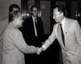 5、判断题 握手礼是当代世界大多数国家通行的见面礼。以下一组握手照片中不反映外交礼仪的是(????)??