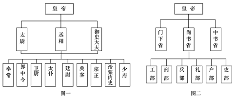 (1)指出材料一中图一、图二反映了中国古代中央官制发生了什么变化?结合所学知识说明这一变化的影响何在?(7分)