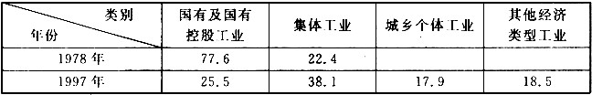1978、1997年我国工业总产值中各种经济成分比重表(%)[???? ]