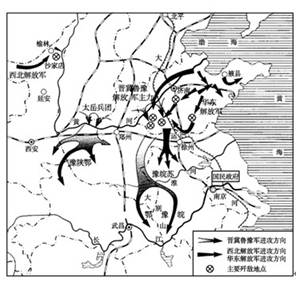 试题分析:从图片可以看出,这是反映刘伯承、邓小平等人率领晋冀鲁豫解放军挺进大别山,揭开了人民解放战争战略反攻的序幕,因此选B。