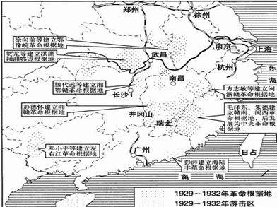 4、选择题 如下图所示,1929—1933年,中围共产党领导的农村革命根据地迅速发展,主要原因是