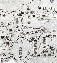 4、判断题 如图,元政府设置了一个东西延伸的带状行省—河南江北行省,将两个大的蒙古都万户府重兵驻扎于此。另外,又将秦岭、汉中、北川的险地划归陕西行省,也驻有一个蒙古都万户府。元政府上述做法的目的不包括
