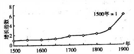 4、判断题 读英国人均国民生产总值的指数变化(1500—1900年)示意图,分析正确的是