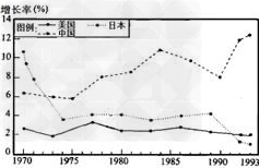 3、判断题  下图是“1970~1993年美国、日本与中国国内生产总值年均增长率曲线图”,对此解读正确的是