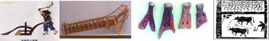 ①曲辕犁 ????②翻车 ③耒耜 ???④牛耕