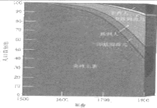 4、判断题 下图是近代某大洲居民比例变化图。结合所学判断,下列解读正确的有