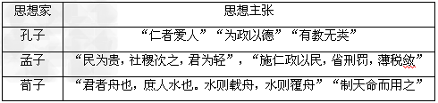 3、判断题 阅读表格,在下列早期儒学家的思想主张中,体现的共同思想是