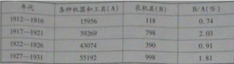 材料二 近代中国工业十分落后,农业机器主要依赖进口,表反映了辛亥革命后20年间机