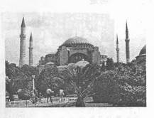 材料二:1453年奥斯曼帝国攻占君士坦丁堡,改名为伊斯坦布尔(意为伊斯兰之城),并宣布将圣索菲亚大教堂改造成清真寺,大教堂旁也出现了4座伊斯兰尖塔。(见图)