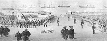5、判断题 1862年,日本藩士搭乘“千岁丸”前往上海考察。“千岁丸”抵沪之时,正值太平天国进攻上海,藩士们争相前往前线观战。在参观了李鸿章的淮军之后,高杉晋作评论道:“铳炮尽中国制,而甚不精巧,兵法与器械皆无西洋”。峰洁认为,这样的兵“我一人可敌五人”。名仓予何人说:“夫今以清国之弱兵,且以旧来之拙劣火器,与西虏(指西方)战而亦有取胜之时,何况以本朝武勇之兵,采用西虏之猖獗并军舰之制,此所谓如虎添翼,则西虏之猖獗不足深忧也”。