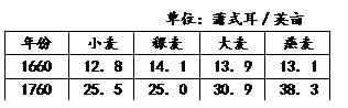 下表是对1660年和1760年英国东部粮食产量的一种估算。