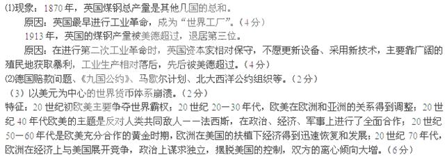 (3)二战后,美国世界经济霸主地位动摇的主要标志是什么?进入20世纪以来,欧美关系发展的情况怎样?(8分)