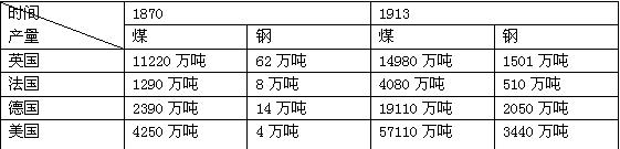 材料一 19世纪末、20世纪初主要资本主义国家煤钢增长情况简表: