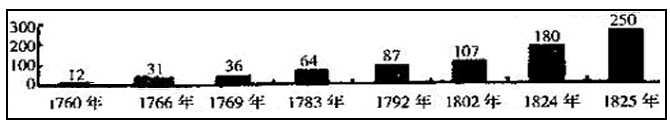 4、判断题 ? 下图是美国学者查尔斯·金德尔伯格在《世界经济霸权1500—1990》一书中描绘的英国某个时期申请专利数量的变化图。下列哪一现象与图中反映的专利数量变化存在因果关系?