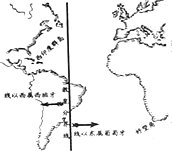 1、判断题 1494年,西班牙和葡萄牙在教皇仲裁下,划定了一条如图所示的分界线。这意味着