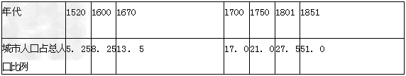 材料二?16—19世纪英国城市人口占总人口比例(%)