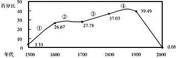 4、判断题 下图反映的是世界殖民地占全球陆地(南极洲除外)面积的比例(%)变化,对此解读不正确的是