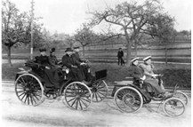 3、判断题 下图是早期汽车发明人与家人在旅行,以下对这幅图的评述中,正确的是