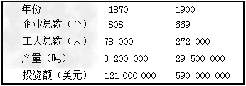 5、判断题 下表为美国钢铁业统计表,表中所反映的19世纪后期美国钢铁业发展变化的主要特征是?