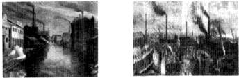 4、判断题 瓦特蒸汽机问世后,城市中工厂林立,从图1和图2中你能感受到其时工厂
