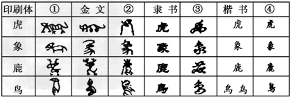 材料1:汉字是历史最悠久、生命力最强的文字之一,而且?具有极强的承载功能。下图以“虎”、“象”、“鹿”、“鸟”四字为例,分别展现了“汉字七体”的风采:?