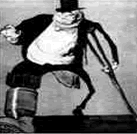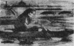 图一《沉默的强盗》(骷髅在飘着废弃物、发黑变臭的河面上“划船”)