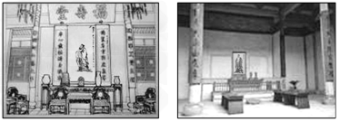 材料2:中国古代一些居室堂屋、家族祠堂或私塾学堂的墙壁正中都挂着孔子像(如下图)。