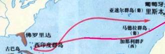 4、判断题  观察下图,分析下列说法与下图中航线的说法一致的是?