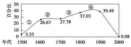 4、判断题 对下图反映的世界殖民地占全球陆地(南极洲除外)面积的比例(%)变化的解读,不正确的是( )。
