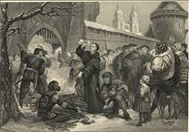 图一 教皇出行图?图二 路德焚毁教皇令?图三?烧死“异端”