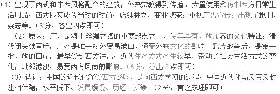 ⑵依据材料并结合所学知识,分析近代广州社会生活较早走向近代化的原因。(6分)