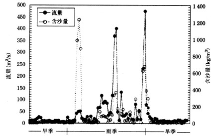 (3)根据材料二,"乌金三角"地区雨季的降水特点是______________。河流流量和含沙量的关系是____________________________。