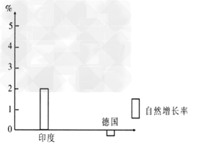 1、综合题 读下表,完成下列要求。(1)根据表中所提供的数据,在图中绘制出印度和德国人口自然增长率的柱状图。