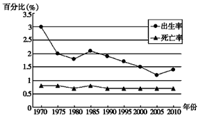 5、单选题 下图为“我国1970—2010年人口出生率和死亡率统计图”。回答1—2题。
