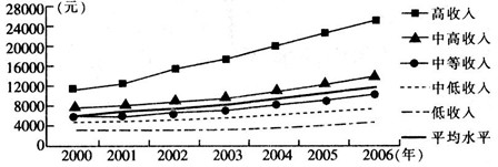 材料四:我国城镇居民人均可支配收入变动趋势(2000~2006年)