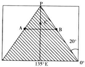 1、综合题 下图为圆柱投影图,阴影部分为黑夜。据图回答问题。(1)此刻太阳直射点的坐标为__________。P点的纬度是____。