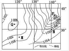 (4)此时,M、N、P、Q四地中最可能出现降水天气的是哪里?简述理由。(2分)