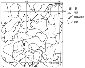 小题2:在B地形区,降水的局部差异明显,简述造成该地降水局部差异及产生的主要原因。