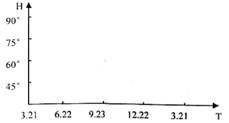 (2)计算太阳直射O点的大致日期,并在下图中绘出O点正午太阳高度的年变化轨迹。 (8分)