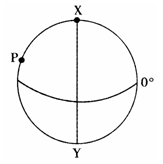 4、单选题 下图大圆所示范围内为夜半球,北极圈内出现极夜,X点纬度为66°34′N,Y点经度是70°W。回答17~18题。