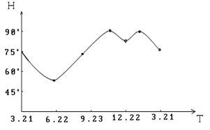 (2)计算太阳直射O点的大致日期,并在下图中绘出O点正午太阳高度的年变化轨迹。 (8分)