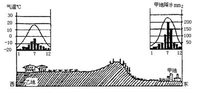 (1)比较甲、乙两地的气温曲线和降水柱状图,分析指出:甲地应为:?气候,乙地应为:__? ______气候;两地降水的明显差异是:___? _____________。