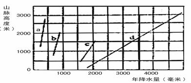 1、单选题 下图的四条线中,反映秦岭降水状况的是?