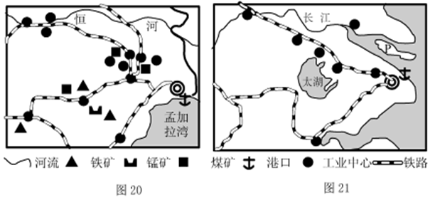 材料一:印度乔塔那格浦尔工业区和中国的沪宁杭工业区图