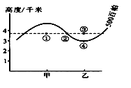 本题考查等压面的知识。图中同一等压面气压相等,所以②=④。①气压高于等压面气压,所以①为高压,③为低压,近地面甲为低压,气温高,乙为高压,气温低。气流由乙流向甲地。所以本题选择C选项。