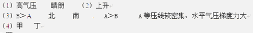 (3)比较A、B两点的气压值大小?,A地偏?风,B地偏?风。(南或北)