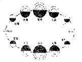 5、单选题 下图是南北半球极昼极夜区的季节性扩大和缩小,图中每个圆圈分为上下两半,分别表示北极地区和南极地区。读图完成下列各题。