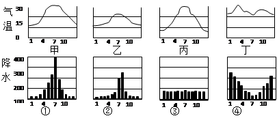 本题解析:1.台州位于浙江省,属于亚热带季风气候,最低温在0C°以上且年较差比较大,符合的是甲—②。