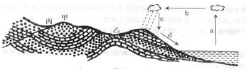 (3) 图中字母表示的水循环类型属于?循环,其中a表示的环节是?,d表示的环节是?。