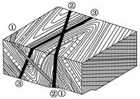 4、单选题 岩浆沿着岩层裂隙或断层侵入所形成的板状岩体称为“岩墙”,下图为“不同年代相互穿插的岩墙图”。按生成先后排序正确的是 ( )